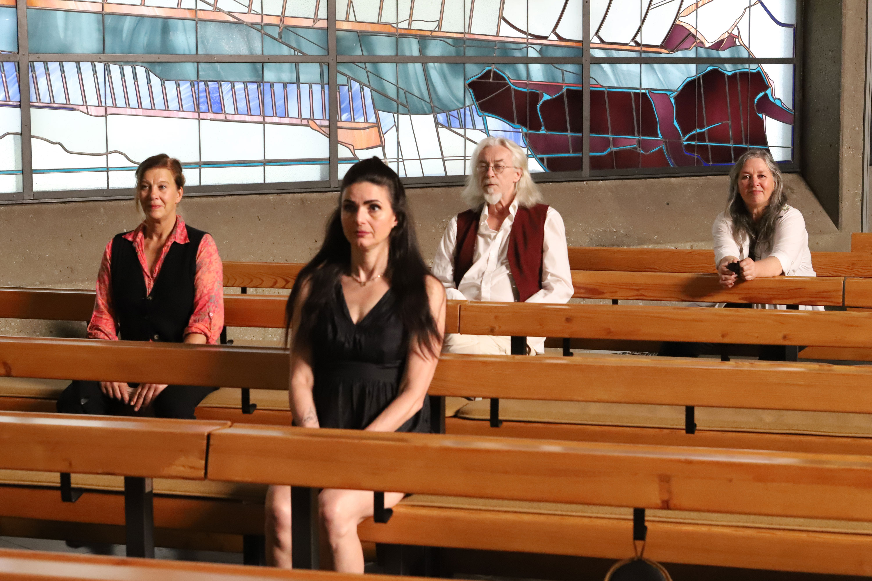 Begleitet werden die szenografischen Interaktionen von dem Duo Anirahtak (Stimme) und Ludger Singer (Posaune, Trompete und Orgel).