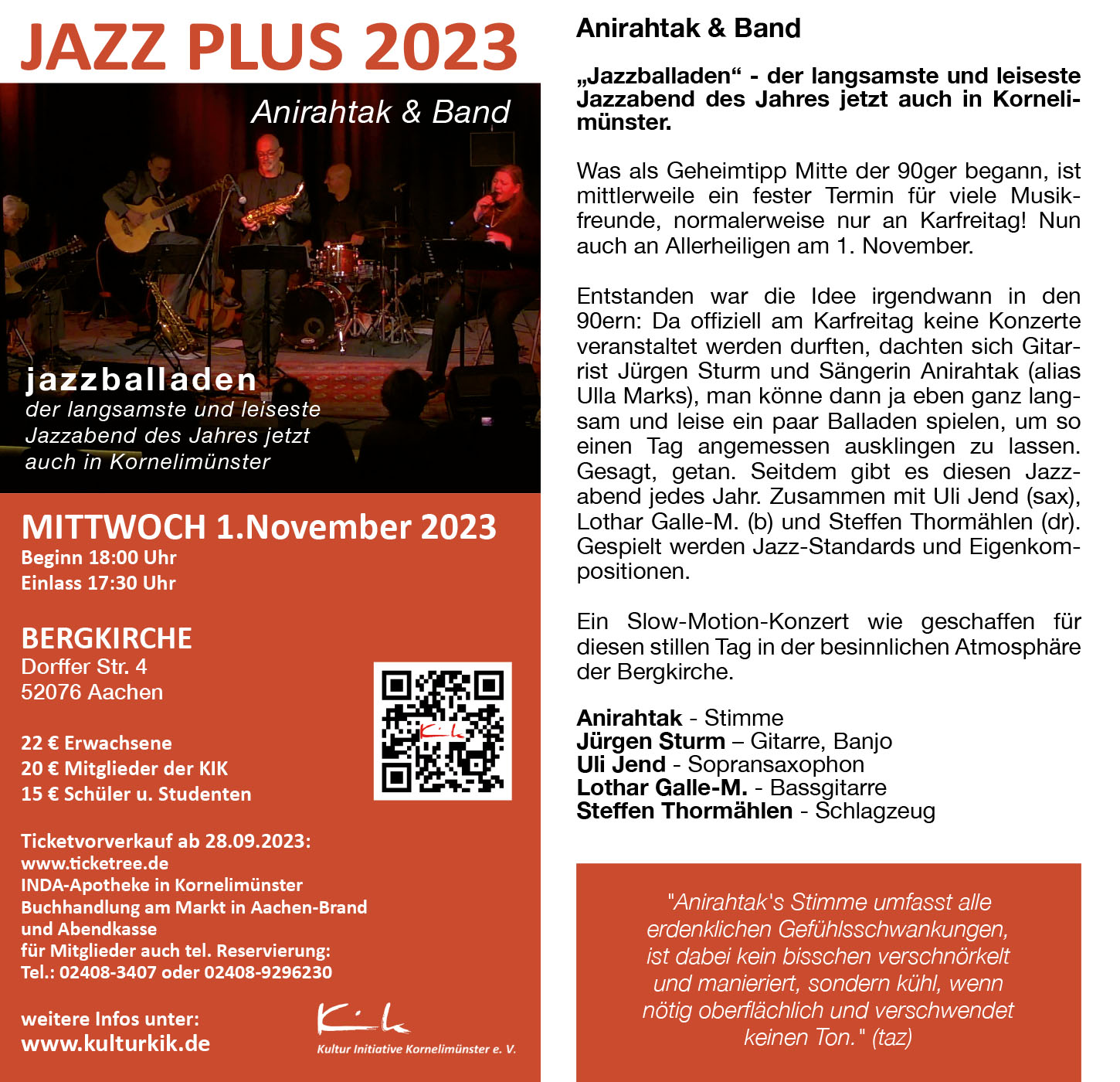 Anirahtak & Band - Jazzballaden, 29.3.2013, 20 Uhr, Theater K >>>