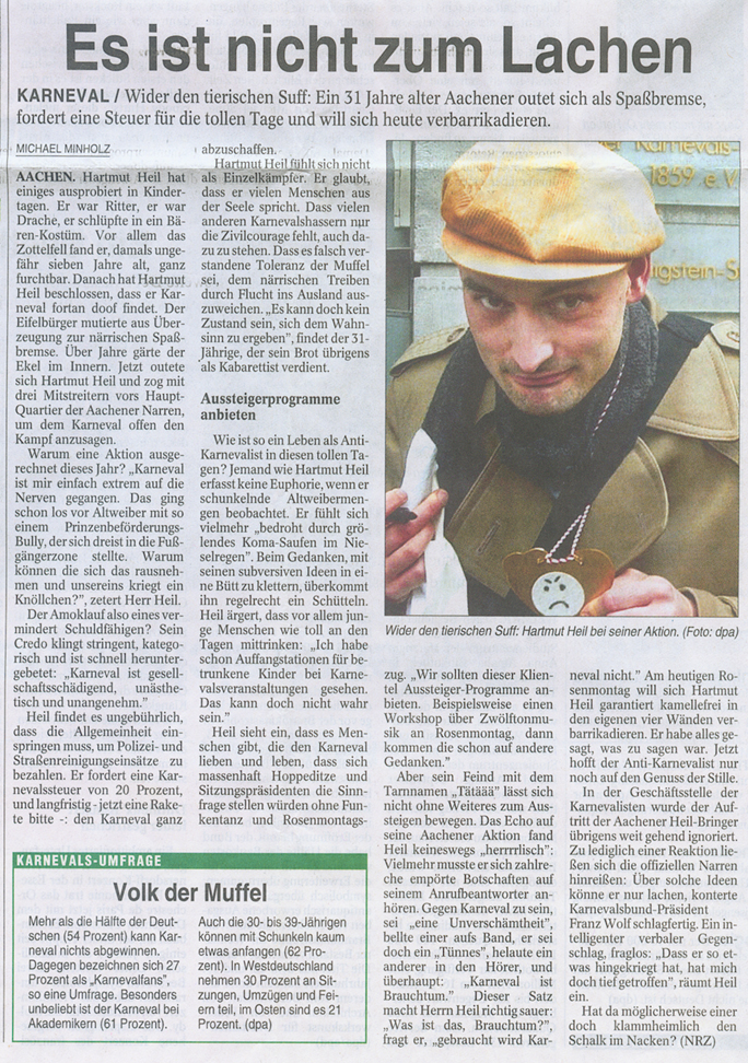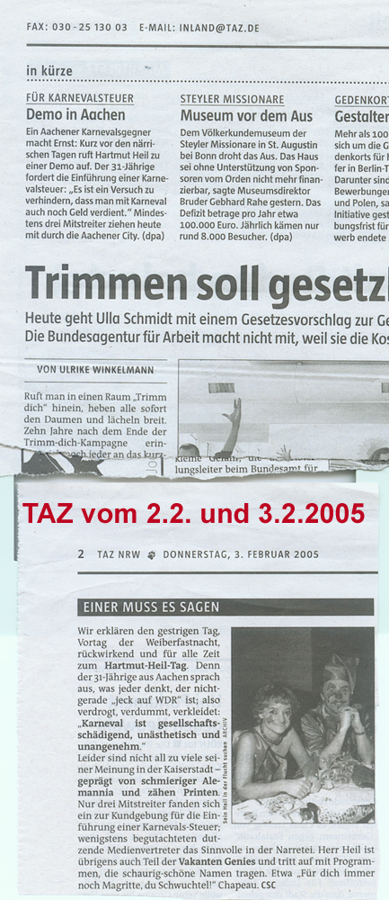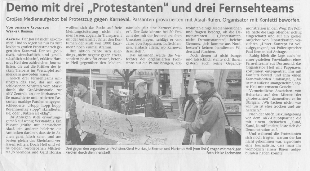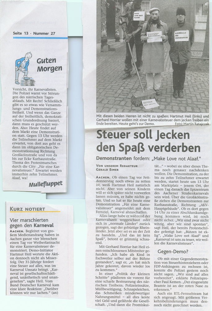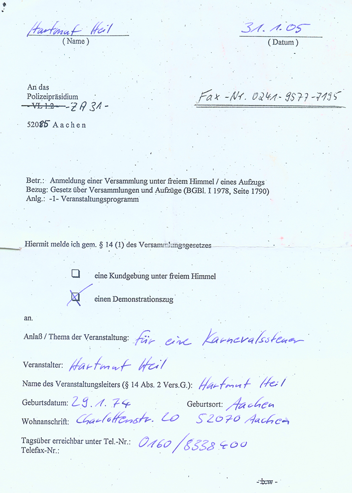 Eine Demonstration für die Einführung einer Karnevalssteuer in der Karnevalshochburg Aachen. Die Original-Dokumente: